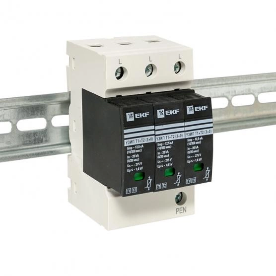 Полное описание: Устройство защиты от импульсных перенапряжений Т1+Т2; Iimp-12.5kA; In-20kA; Uc-275В; 3+0 PROxima EKF OV12-3-503
