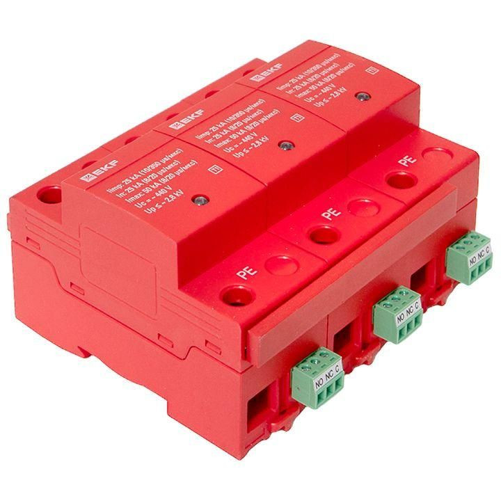 Устройство защиты от импульсных перенапряжений класс 1 Iimp 25кА (10/350мкс) 3P EKF spd-t1-3p