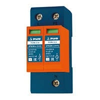 Двухполюсное УЗИП класса II комбинированного типа. УЗИП выполнено из одного сменного варисторного модуля, одного модуля с разрядником и базы для подключения к сети и креплению на DIN-рейку 35 мм.