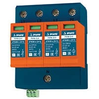Четырехполюсное УЗИП класса II комбинированного типа. УЗИП выполнено из трех сменных варисторных модулей, одного модуля с разрядником и базы для подключения к сети и креплению на DIN-рейку 35 мм. Оснащено контактами дистанционной сигнализации повреждения рабочего элемента.