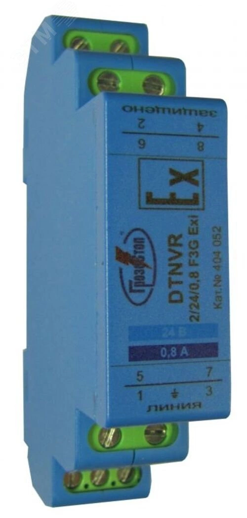 Полное описание: УЗИП ГРОЗОСТОП DTNVR 2/24/0,8 F3G Exi, Uо - 24 В, IL - 0,8 А, In (8/20) - 20 кА, искробезопасная цепь
