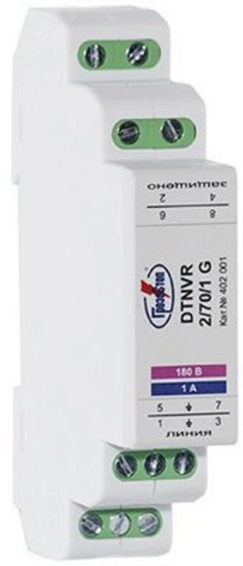 Полное описание: УЗИП ГРОЗОСТОП DTNVR 2/70/1 G , Uс - 70 В, IL - 1 А, In (8/20) - 20 кА.