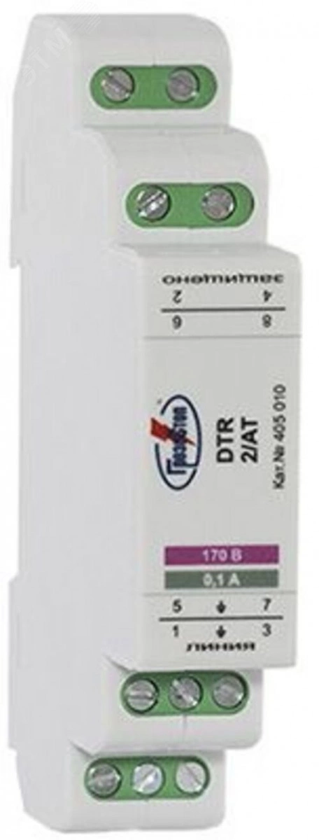 Полное описание: УЗИП ГРОЗОСТОП DTR 1/АТ, Uо - 170 В, IL - 250 мА, In (8/20) - 20 кА, , 10 Мбит/с