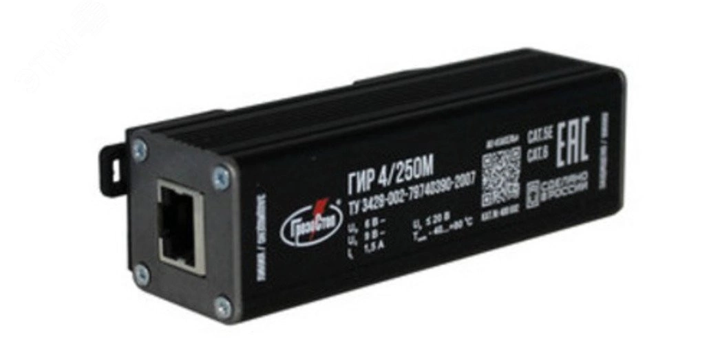 Полное описание: УЗИП ГРОЗОСТОП ГИР 4/250М/П, Uо - 6 В, IL - 2 А, In (8/20) - 1 кА