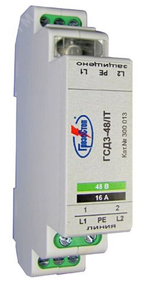 Полное описание: УЗИП ГРОЗОСТОП ГСД3-48/IT, класс III, In - 2,5 кА (8/20), Imax (8/20) - 5 кА, Up(L/L) - < 350 В