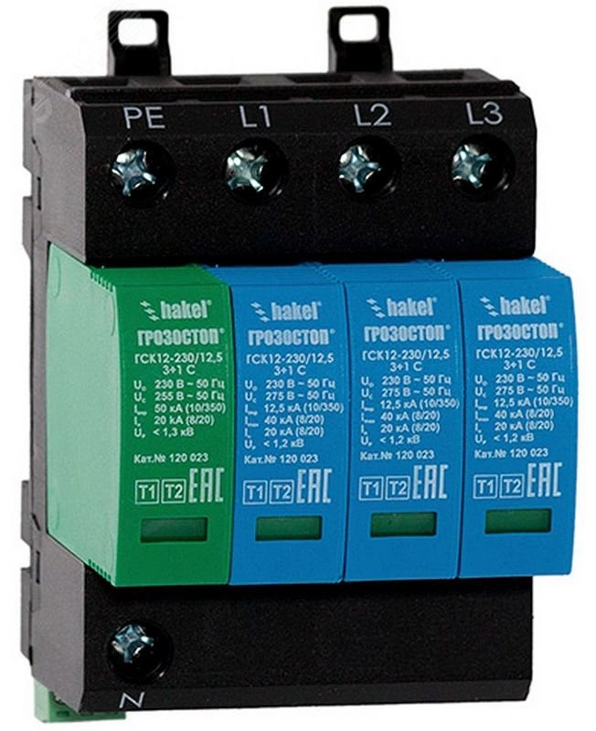 Полное описание: УЗИП ГРОЗОСТОП ГСК12-230/12,5 3+1 С, класс I+II , Iimp - 12,5 кА (10/350), Imax (8/20) - 40 кА