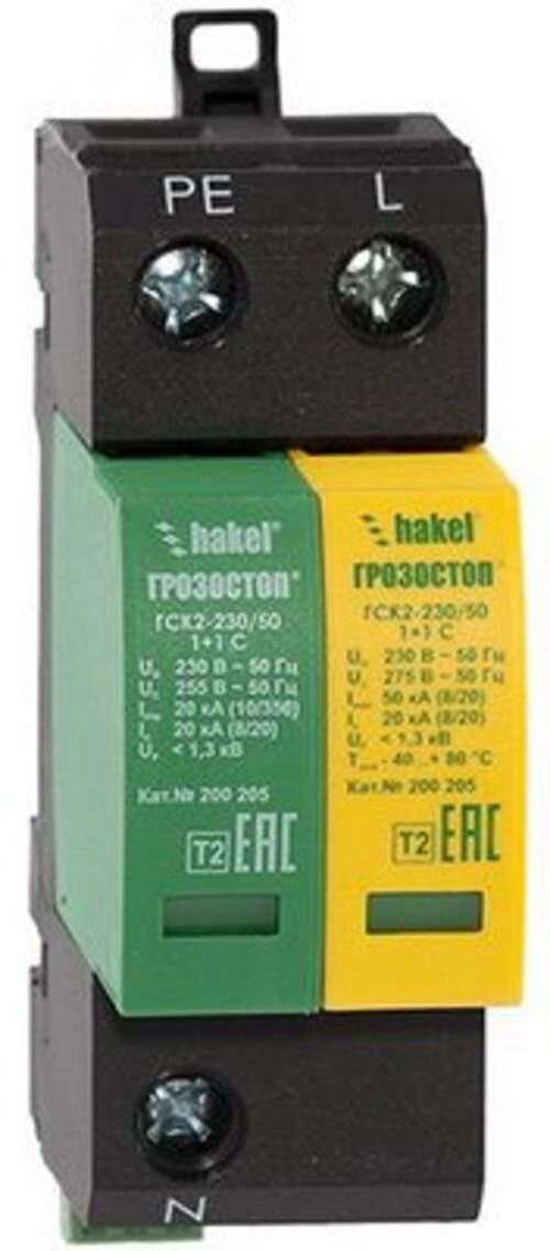 Полное описание: УЗИП ГРОЗОСТОП ГСК2-230/50 1+1 С, класс II, In - 20 кА (8/20), Imax (8/20) - 50 кА