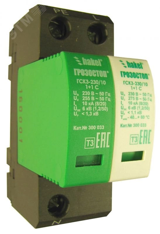 Полное описание: УЗИП ГРОЗОСТОП ГСК3-230/10 1+1, класс III, In - 10 кА (8/20), Uoc (1,2/50) - 6 кВ, Up(L/N) - < 0,8 кВ