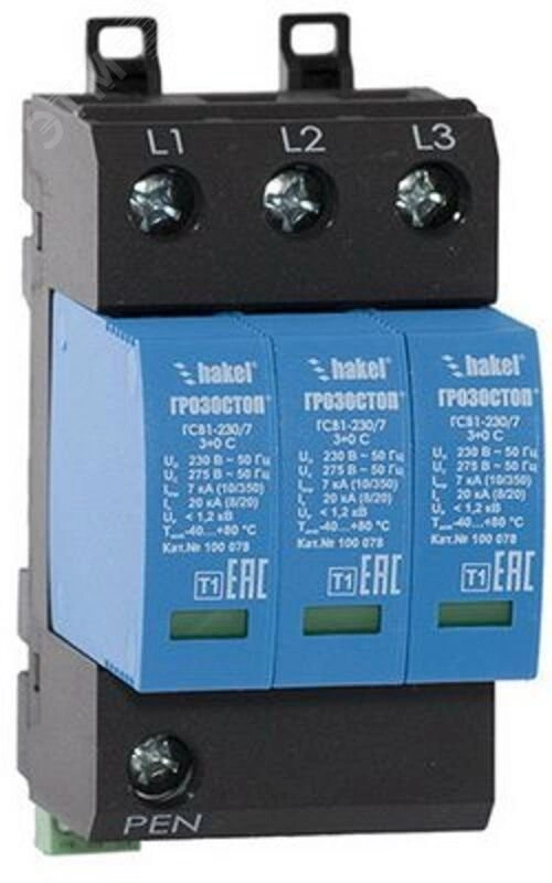Полное описание: УЗИП ГРОЗОСТОП ГСВ1-60/7 3+0 С, класс I, Iimp - 7 кА (10/350), In - 20 кА (8/20)