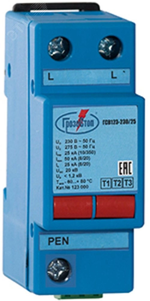 Полное описание: УЗИП ГРОЗОСТОП ГСВ123-110/25 C, класс I+II+III , Iimp - 25 кА (10/350), Imax (8/20) - 50 кА