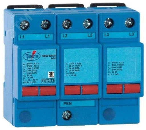Полное описание: УЗИП ГРОЗОСТОП ГСВ123-230/25 3+0 , класс I+II+III , Iimp - 25 кА (10/350), Imax (8/20) - 50 кА