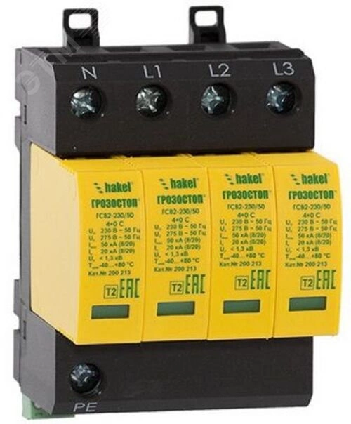 Полное описание: УЗИП ГРОЗОСТОП ГСВ2-120/20 4+0 С, класс II, In - 15 кА (8/20), Imax - 40 кА (8/20)