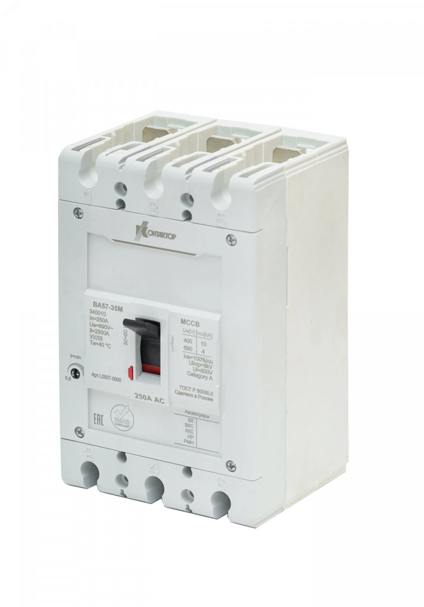 Серия автоматических выключателей в литом корпусе от 16 А до 250 А с отключающей способностью до 42 кА. Версии на переменный ток успешно применяются в промышленности и энергетике, на объектах инфраструктуры ЖКХ и агропромышленного комплекса, в гражданском и коммерческом строительстве. Аппараты ВА57-35М на постоянный ток находят применение в транспортной инфраструктуре, альтернативной энергетике, дата-центрах. Расширенные возможности применения на ответственных объектах за счёт доукомплектации необходимыми функциями и самостоятельного монтажа аксессуаров (НР, РМН, ДК, втычных устройств переднего и заднего присоединения, мотор-приводов, поворотных рукояток) в автоматические выключатели, а также наличия версии аппаратов с регулируемыми уставками. Произведено в России, что дает возможность использовать в программе по импортозамещению.