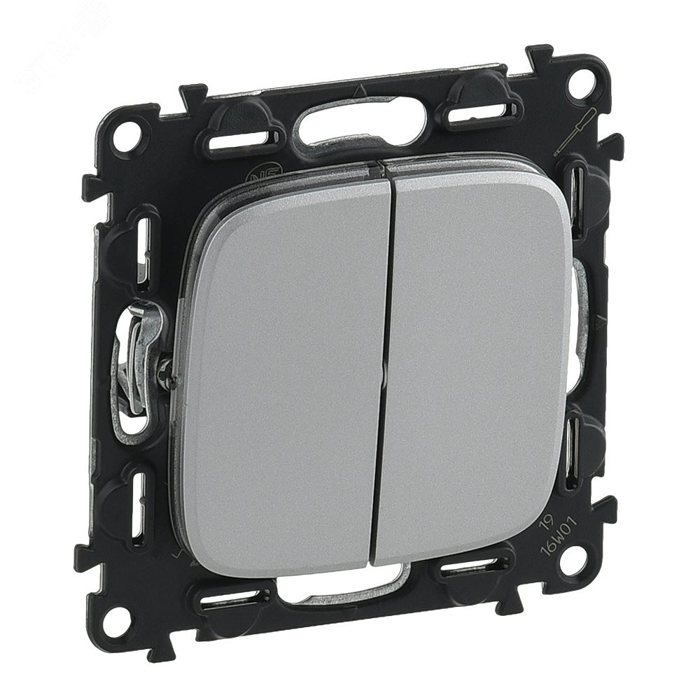 Valena ALLURE Переключатель двухклавишный 10А 250В с лицевой панелью Безвинтовые зажимы Алюминий