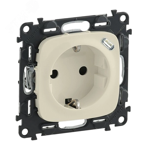 Valena ALLURE.Розетка комбинированная 2К+З 16А ~250В со встроенным зарядным устройством USB C 1.5А 5В.С лицевой панелью.Слоновая кость