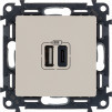 Valena LIFE.Зарядное устройство с двумя USB-разьемами тип А-тип С 240В/5В 3000мА.С лицевой панелью.Цвет Слоновая кость