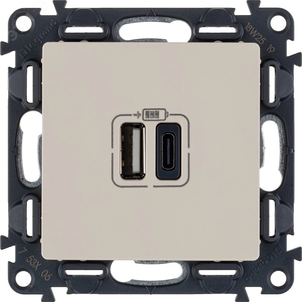 Полное описание: Valena LIFE.Зарядное устройство с двумя USB-разьемами тип А-тип С 240В/5В 3000мА.С лицевой панелью.Цвет Слоновая кость