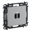 Valena LIFE.Зарядное устройство с двумя USB-разьемами тип С-тип С 240В/5В 3000мА.С лицевой панелью.Цвет Алюминий