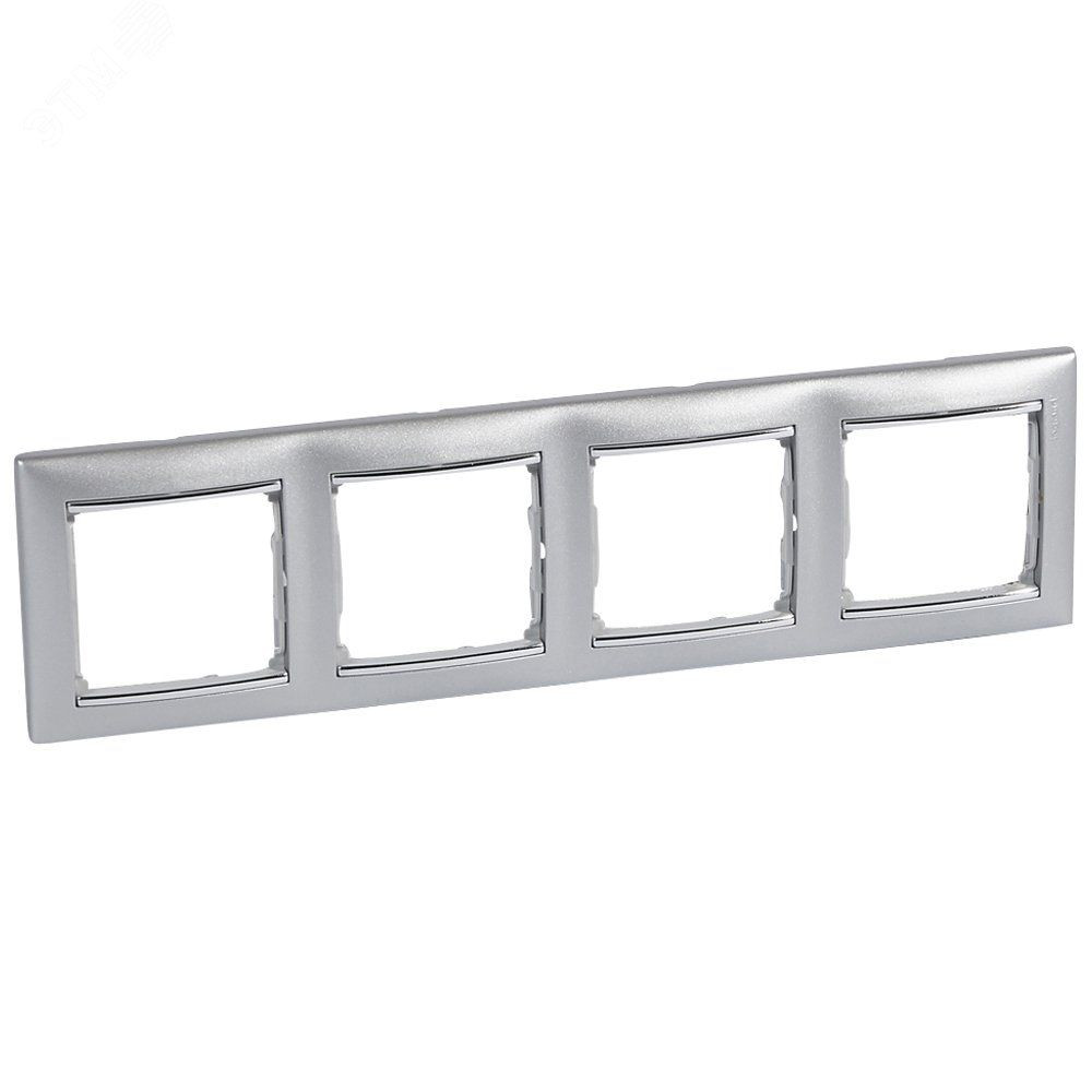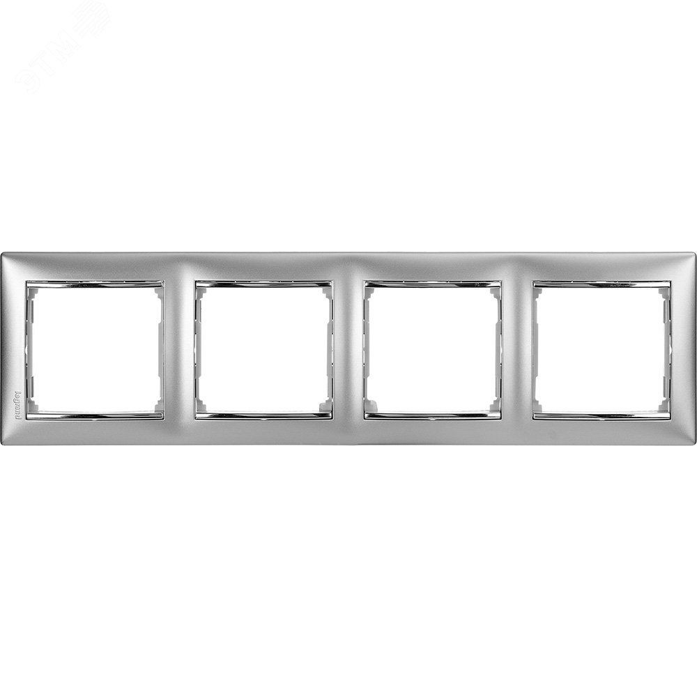 Полное описание: VALENA Рамка 4 поста горизонтальная алюминий/серебро