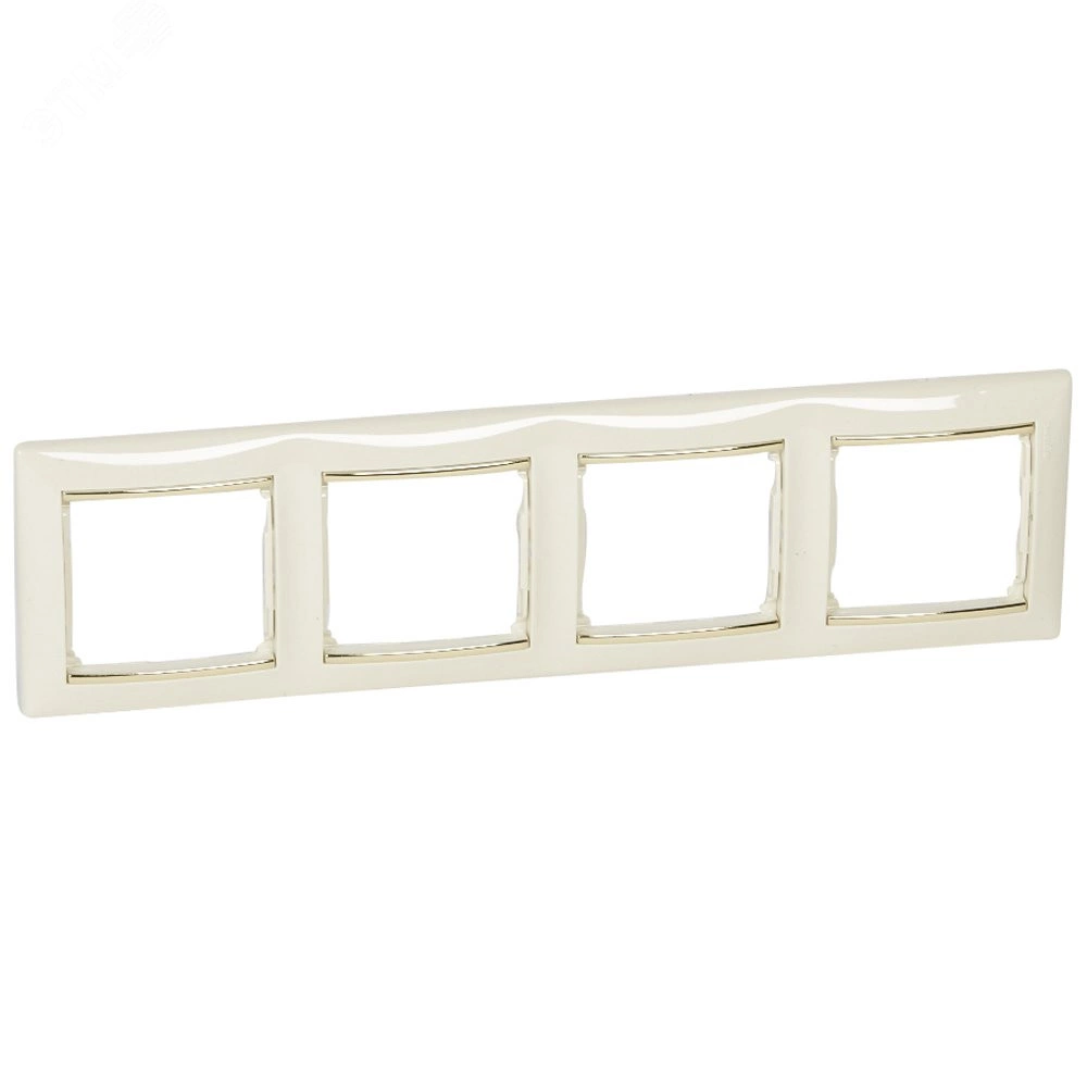 Полное описание: VALENA Рамка 4 поста горизонтальный монтаж слоновая кость/золото