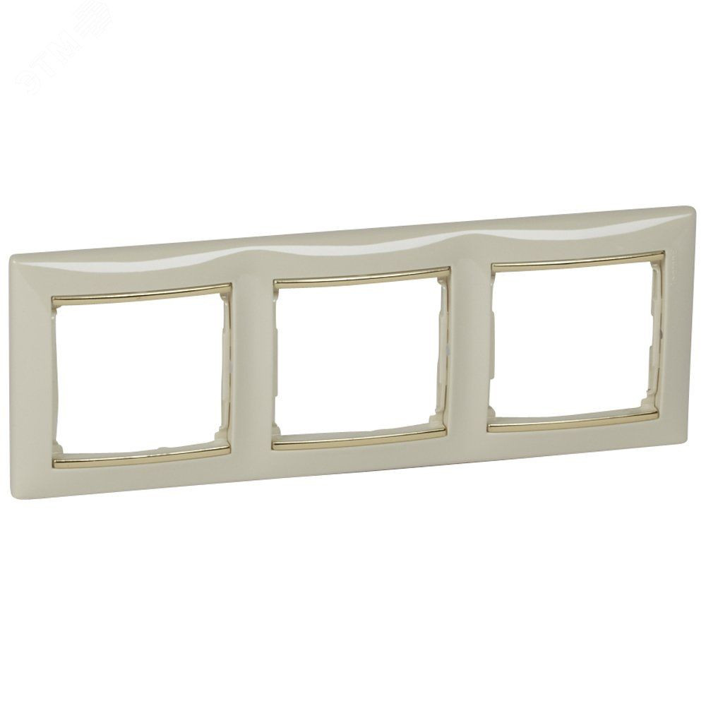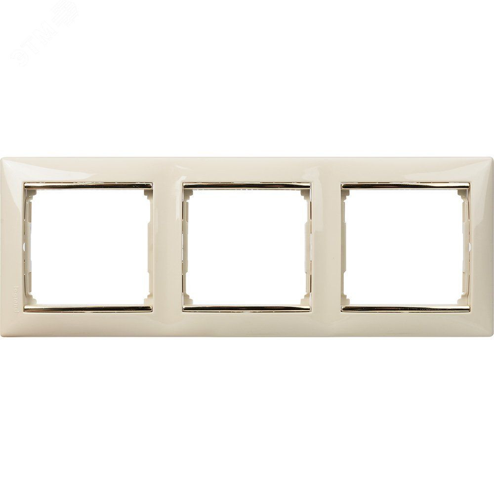 Полное описание: VALENA Рамка горизонтальная 3 поста бежевая/золото