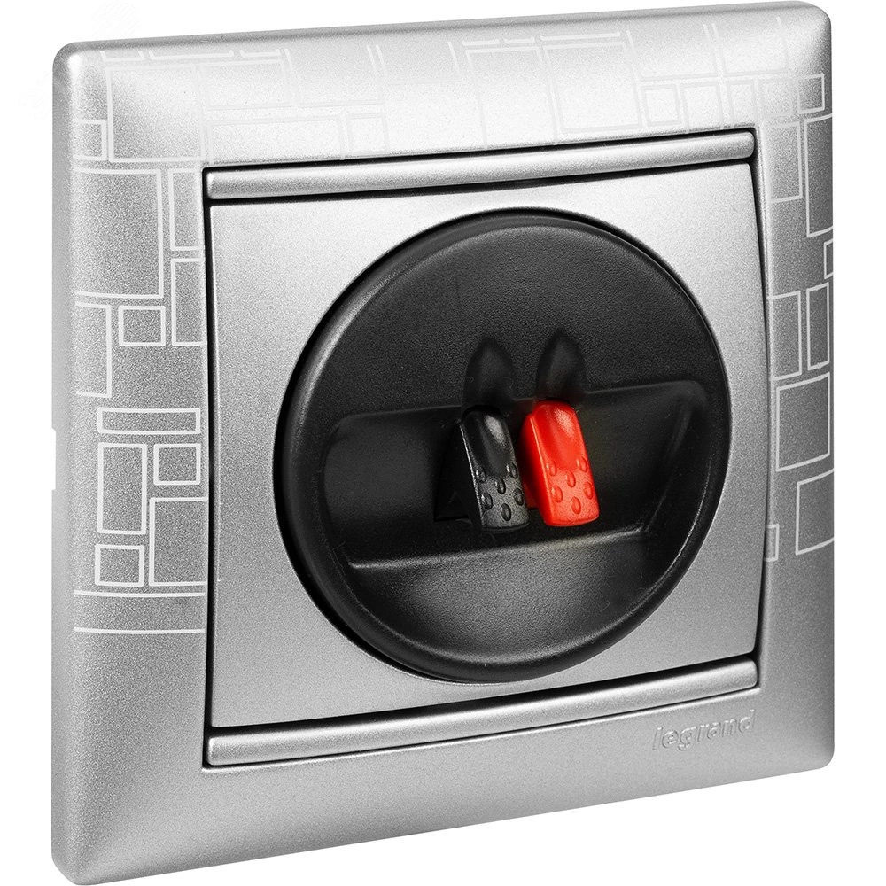 Розетка для акустической системы - Legrand Valena - алюминий. Предназначена для подключения громкоговорителей, колонок и другого аудиооборудования к источнику сигнала. Возможно подключение 1 устройства (моно).