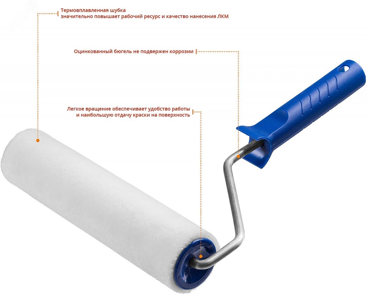 Валик малярный ВЕЛЮР 48, 240 мм, d=48 мм, ворс 4 мм, ручка d=8 мм,