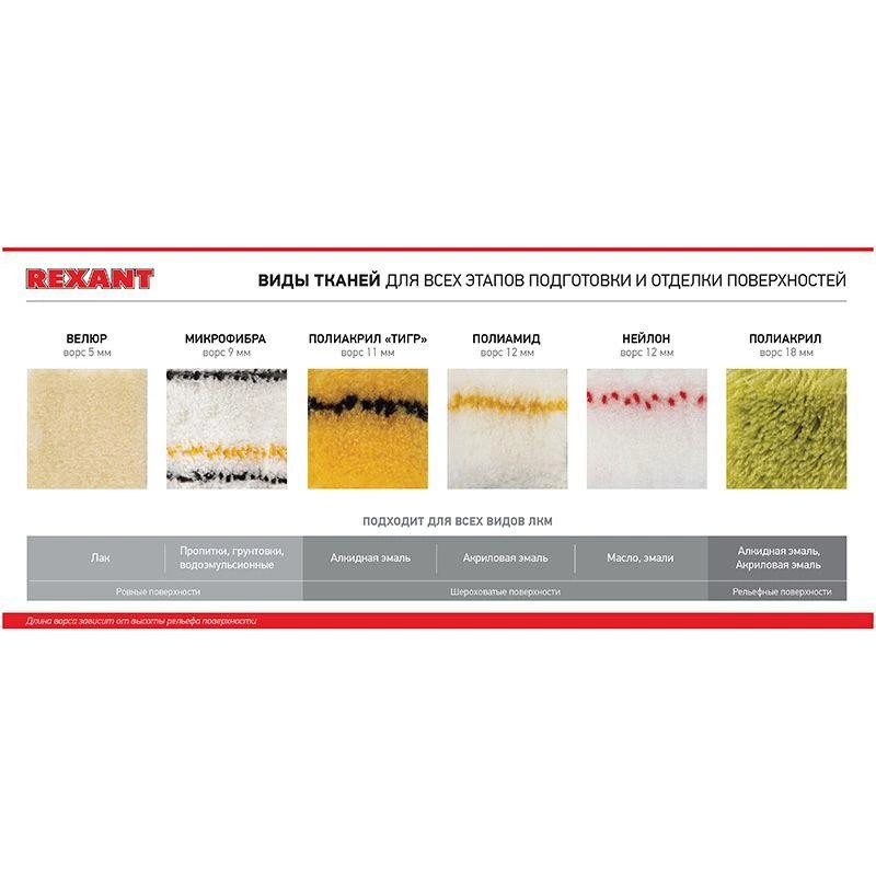 Валик полиакрил желт. с черн. полосой ворс 11мм шир. ролика 180мм бюгель 6мм d42мм Rexant 89-0021