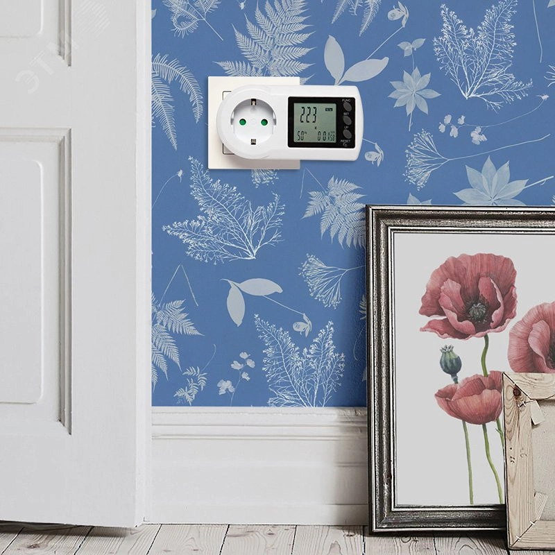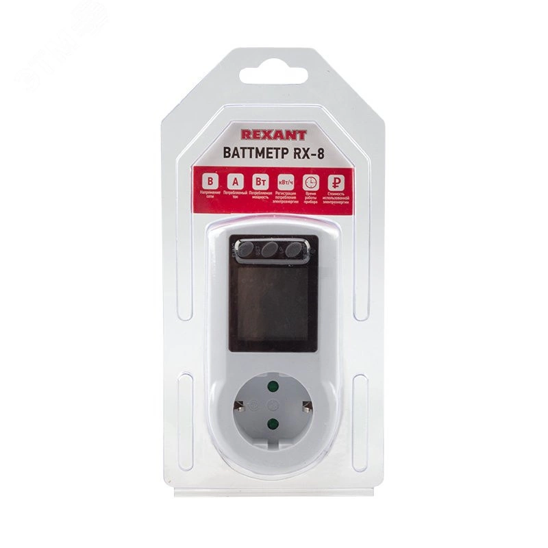 Бытовые ваттметры в розетку (счетчики потребляемой энергии) используются для замера потребляемой мощности различными электроприборами, такими как чайник, холодильник, телевизор, кондиционер, обогреватель, стиральная машина, суммарный ток которых не превышает 16А. Осуществляют контроль над потреблением энергии устройствами, подключенными к устройству через стационарный сетевой шнур. Благодаря функции смены отображаемого дисплея ваттметры дополнительно показывают напряжение и частоту тока сети, потребляемую прибором силу тока и мощность в киловатт-часах, суммарную потребленную прибором мощность в киловатт-часах и общую стоимость электроэнергии. Широкий диапазон показаний прибора также используется для определения тока утечки и перерасхода мощности. Ваттметры оснащены возможностью установки цены киловатт-часа.