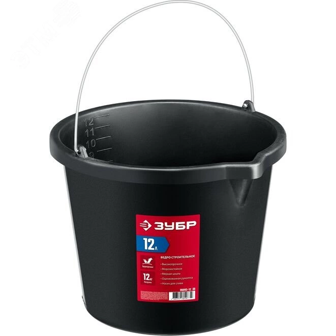 Ведро строительное пластиковое 12 л, высокопрочное с носиком