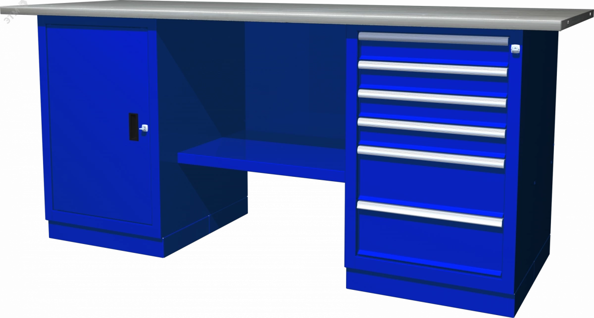 Верстак с двумя тумбами, тумба с 1 одной дверцей и тумба с 5 ящиками, 1900х686х820 мм
