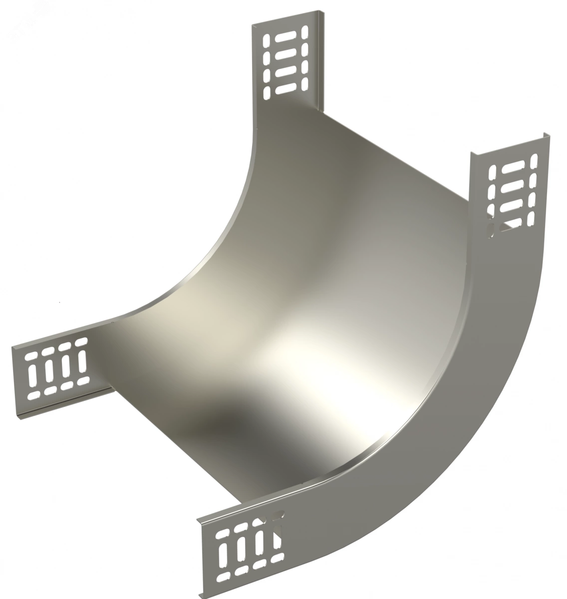 Вертикальные углы CT-VU применяются для создания вертикальных переходов кабельных трасс под углом 90 градусов из лотков CT. Вертикальные углы уже имеют соединительные поверхности и для крепления к кабельным лоткам используются комплекты болтов RS 5 (болт M6x12 и гайка M6). Радиус изгиба углов CT-VU составляет 200 мм.