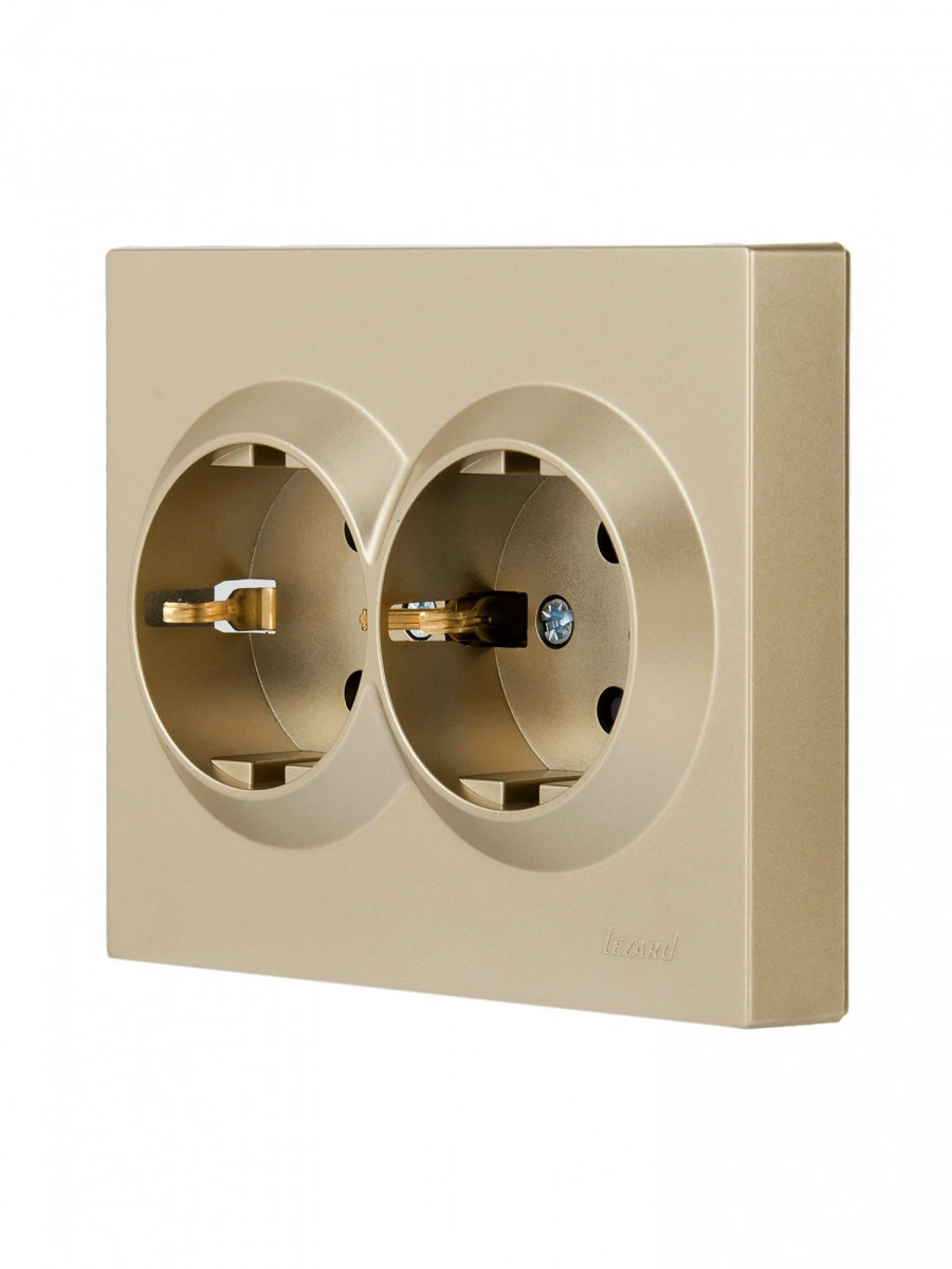 Полное описание: VESNA Розетка двойная с защитой от детей ПБТ золото