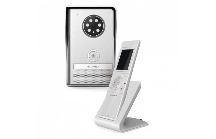 Беспроводный комплект видеодомофона. Дисплей 2,4" цветной TFT LCD, разрешение экрана 320?240. Функция памяти – внутренняя память на 50 кадров. Диапазон рабочих температур: для вызывной панели -30...+55 °C; для трубки -10...+45. Пластиковая вызывная панель с классом защиты IP55, цвет – серебро. Беспроводная видео трубка, цвет – белый. Питание вызывной панели – 2 батареи LR14 типа «С», или 12 В от внешнего источника). Размеры базовой станции: 80?95?104 мм, размеры трубки: 53?188?26 мм, размеры вызывной панели: 105?167?50 мм.