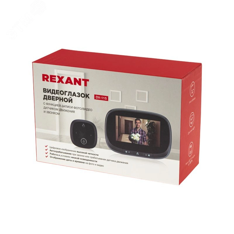Видеоглазок дверной (DV-115) с цветным LCD-диспле ем 4.3'' с функцией записи фото/видео по движению. встроенный звонок. ночной режим работы,