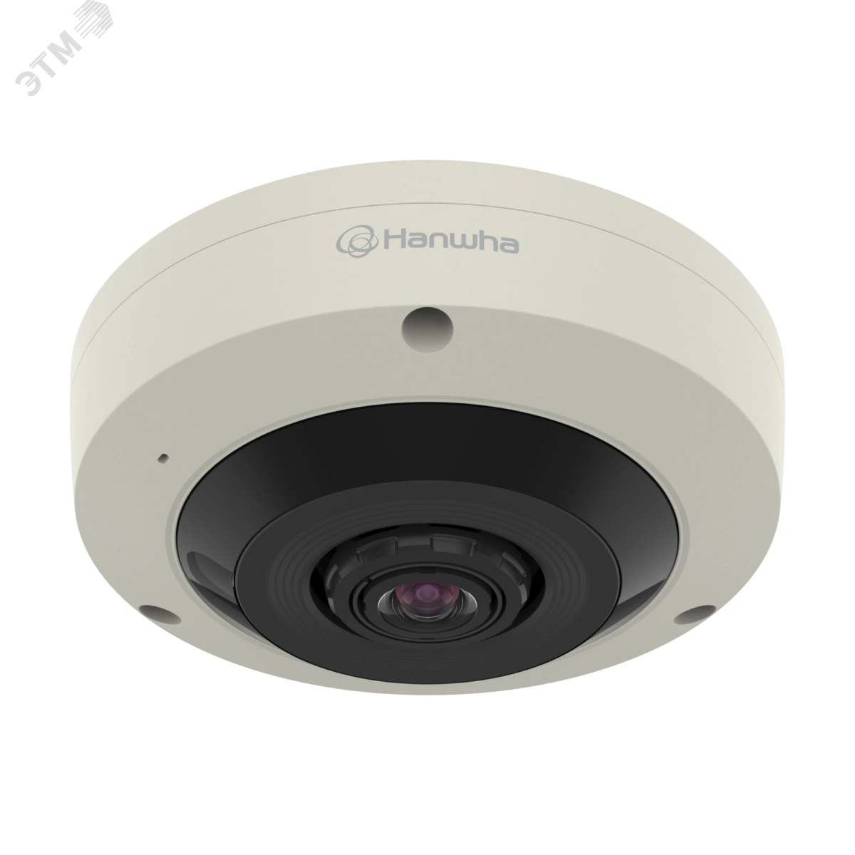 Панорамная IP-камера с объективом «рыбий глаз» и функцией день-ночь. Камера поддерживает технологию WiseStream II, имеет фиксированный встроенный объектив 1.6 мм и угол обзора 192 град по горизонтали и 192 град по вертикали. Чувствительность камеры составляет 0,1 люкс в цветном режиме (F1.6, 1/30 сек.) и 0 люкс в чёрно-белом режиме с использованием ИК-подсветки до 15 метров., Среди функций камеры можно выделить компенсацию встречной засветки (BLC/HLC), аппаратный динамический диапазон (WDR) 120 дБ, улучшение контраста (SSDR), цифровое шумоподавление (SSNR V), цифровую стабилизацию изображения и антитуман (Defog). Также камера оснащена детекторами движения, маскированием, классификацией объектов и аналитическими детекторами. Аудиоаналитика позволяет классифицировать звуки, а статистическая аналитика помогает подсчитывать людей и управлять очередью., Камера работает на основе алгоритмов искусственного интеллекта, что обеспечивает высокую точность и эффективность работы.