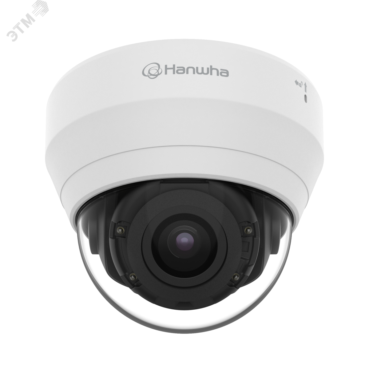 Внутренняя купольная камера с варифокальным объективом 3,2–10 мм и горизонтальным углом обзора 109,0 град (Wide)–33,2 град (Tele) и вертикальным -57,4 град (Wide)–18,7 град (Tele). Она оснащена ИК-подсветкой до 20 метров и матрицей 1/2,8'' 2Mпикс CMOS. Камера может снимать видео с разрешением 1920 x 1080 и частотой 30 кадров в секунду., Среди функций камеры можно выделить компенсацию встречной засветки (BLC), аппаратный динамический диапазон (WDR) 120 дБ, улучшение контраста (SSDR), цифровое шумоподавление (SSNR) и детектор движения с четырьмя зонами. Также есть поддержка WiseStream II, функция обзора коридора (Hallway view 90 град /270 град ) и коррекции искажений объектива (LDC)., Камера поддерживает три независимых видеопотока, ONVIF Profile S/G/T и HTTP API. Питание осуществляется по технологии PoE (IEEE802.3af, Class3), максимальное потребление составляет 6,5 Вт. Камера работает при температуре от -10 град C до +55 град C, её размеры - 119,8 x 98,8 мм, вес -320 грамм.
