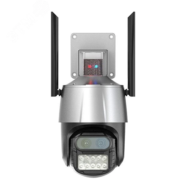 Поворотная Wi-Fi видеокамера GF-IPSD4240MP8.0 выполнена в пластиковом корпусе с классом защиты IP66. Передача цифровой видеоинформации осуществляется с использованием беспроводной связи Wi-Fi. В камере установлены две матрицы 1/3'' CMOS с разрешением 4 Мп (2560х1440) каждая и два объектива с фокусным расстоянием 2,8 мм и 12 мм. Видеокамера имеет ИК подсветку с дальностью до 50 м и светодиоды освещения белого света. Встроенные микрофон и динамик обеспечивают двухстороннюю аудиосвязь. SD слот с поддержкой карты объемом до 128Гб позволяет вести запись изображения с камеры.