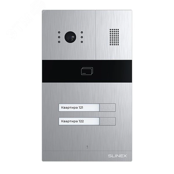 Slinex MA-02CRHD – это вызывная панель на 2 абонента в ультрасовременном дизайне. Панель имеет множество достоинств, среди них - цветная CMOS камера с разрешением 2 Mp (AHD) / 1 Mp (AHD) / 960 TVL (CVBS), встроенный комбинированный считыватель бесконтактных карт EM-Marin, MIFARE, механический ИК фильтр на 6 светодиодов и подсветка именных табличек.