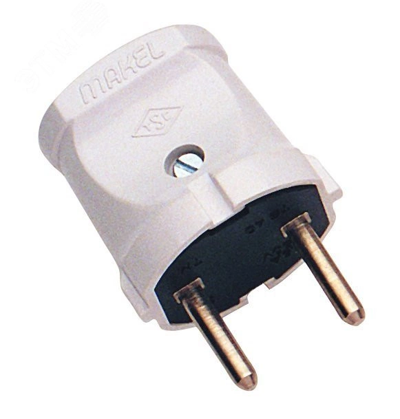 Вилка без заземления белого цвета служит для быстрого подключения и отключения электрооборудования к источнику питания. С ее помощью можно легко и безопасно подключить или отсоединить электроприборы от сети.