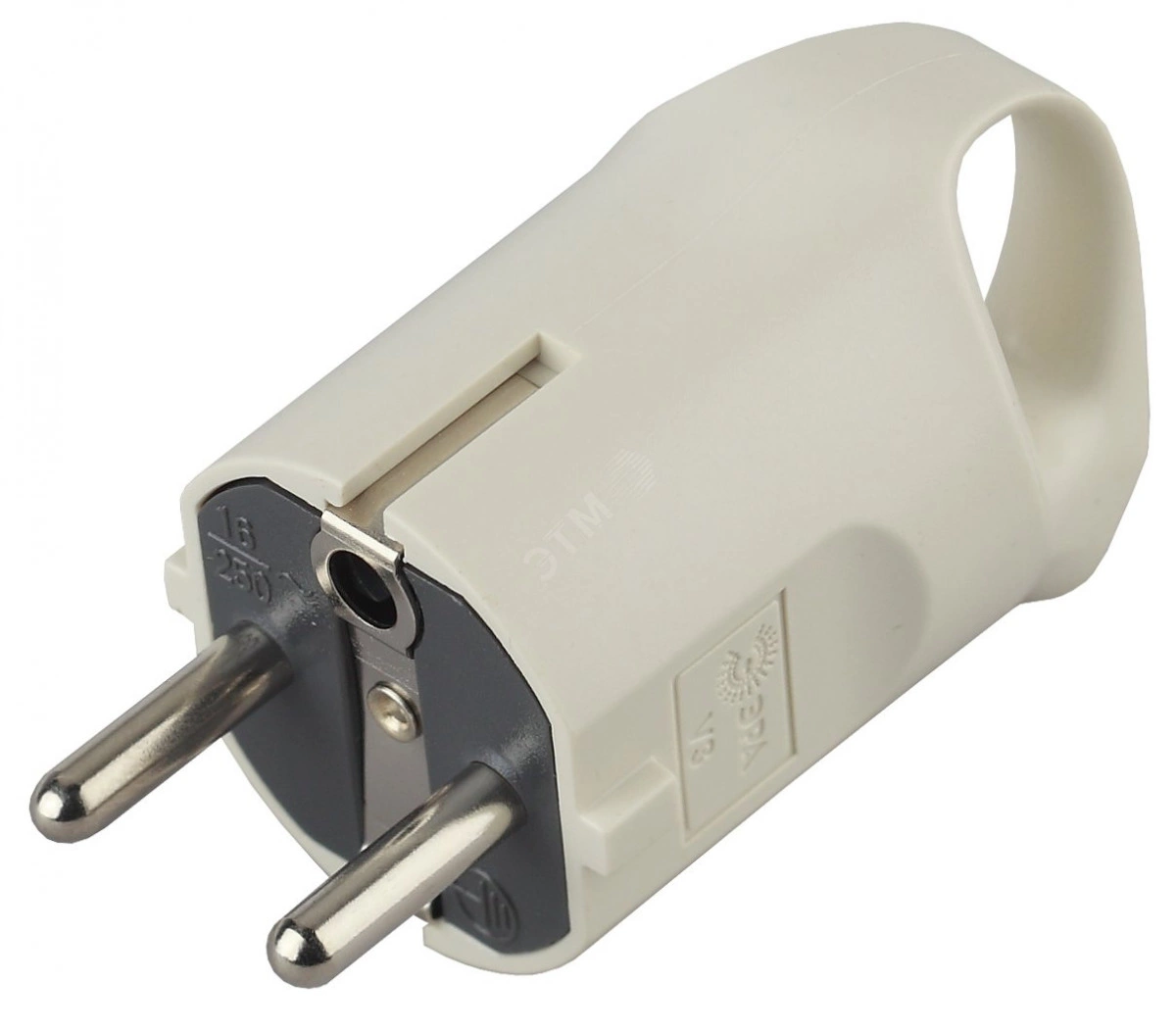 Вилка штепсельная ЭРА, с заземлением, максимальная мощность - 16 A/3500 В (кабель до 3x1.5мм2), поликарбонат.