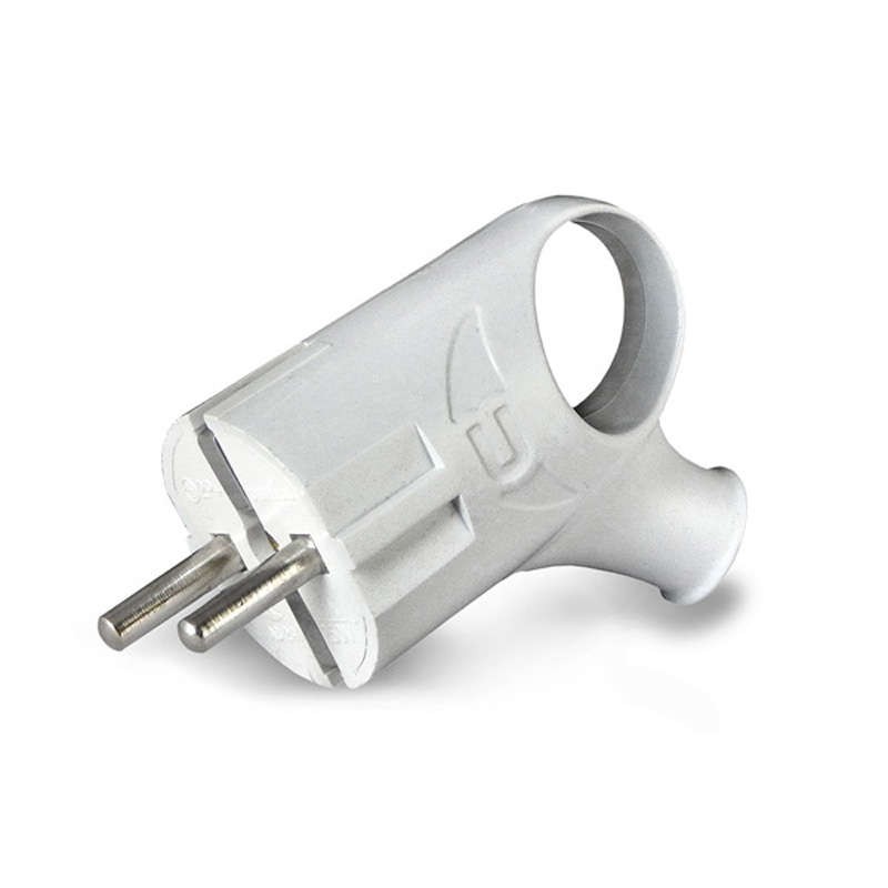 Вилка электрич. с заземл. угл. с ушком бел. 16А 250В (еврослот) UNIVersal А112 – электроустановочный аксессуар, устройство подключения к сети бытовых электроприборов.