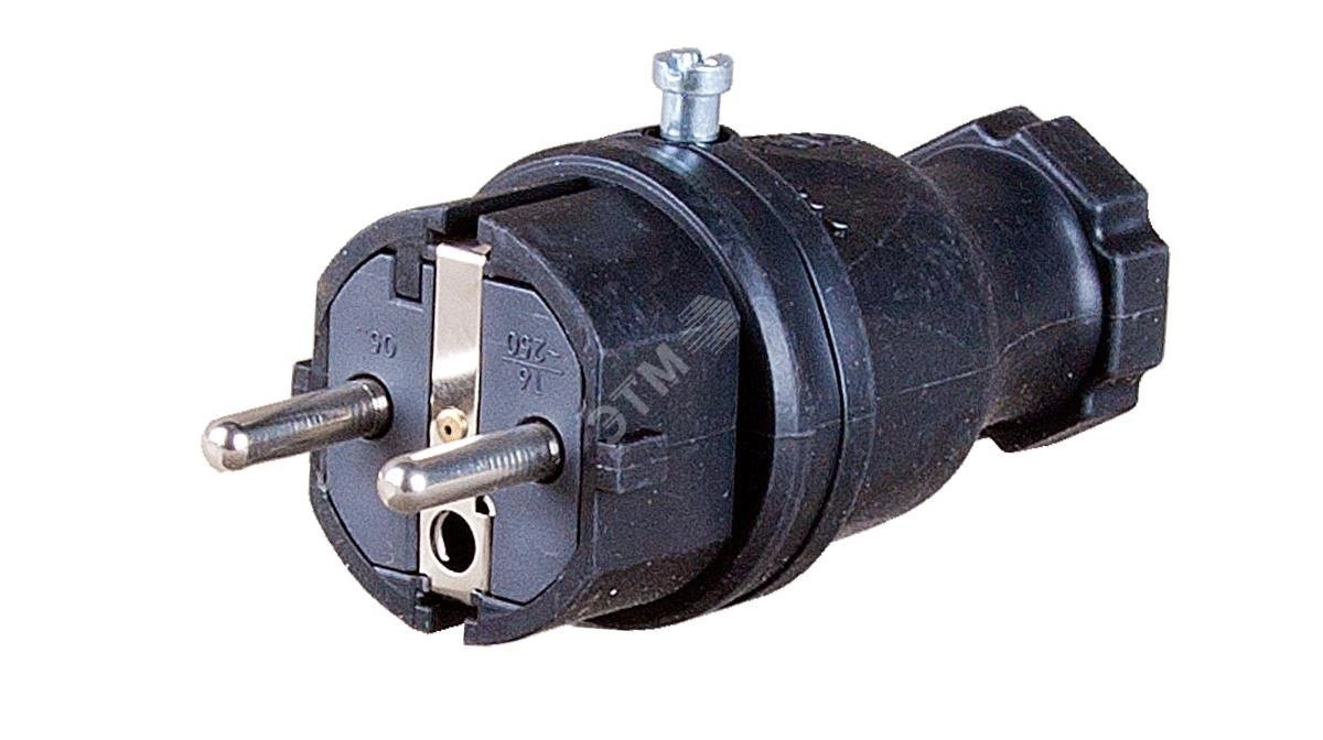 Вилка кабельная 16А/250V/2P+E/IP54 корпус черный, маркер черный, исполнение полностью из резины (корпус TPE, контактная группа TPE). Кабельный ввод с защитой от изломов (мембранное уплотнение). Двойной стандарт заземления.