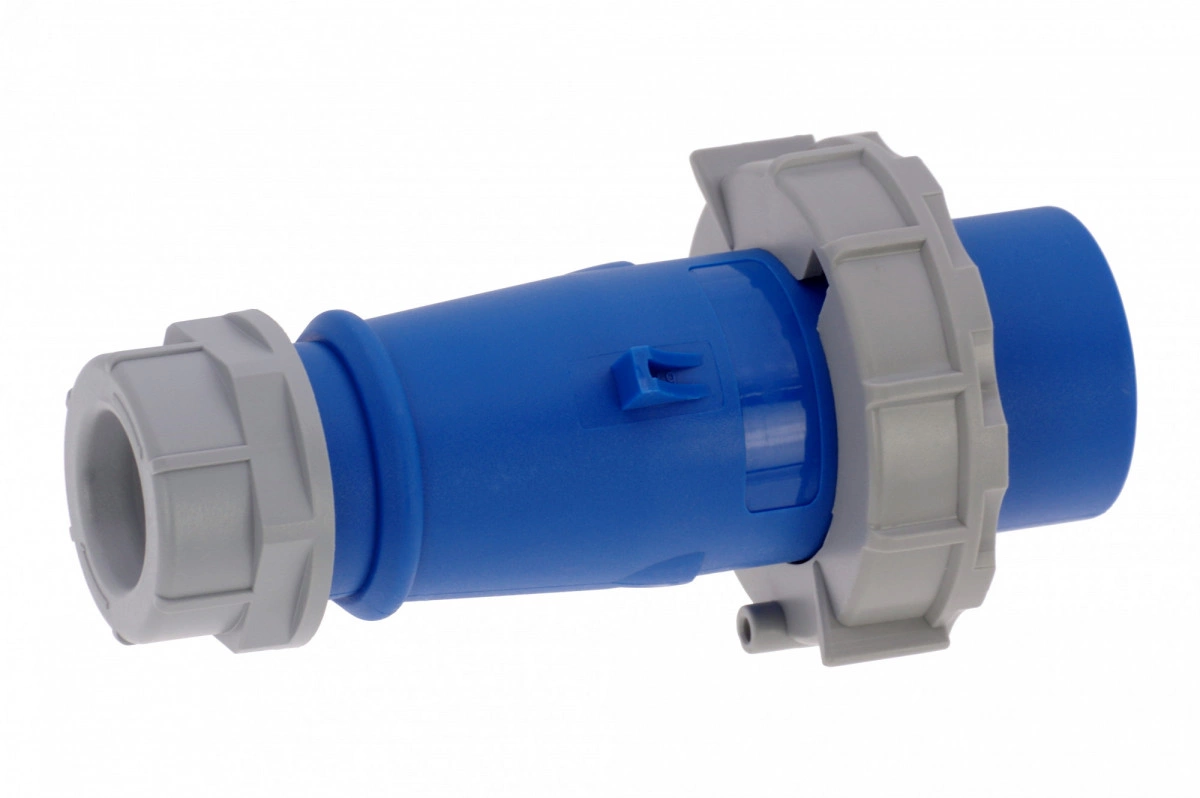 Вилка кабельная 16A/230V/1P+N+E/IP67 имеет винтовые контакты, выполнены из латуни. Сальник с разгрузкой натяжения кабеля. Корпус выполнен из полиамида