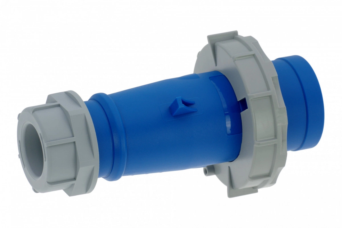 Вилка кабельная 32A/230V/1P+N+E/IP67 имеет винтовые контакты, выполнены из латуни. Сальник с разгрузкой натяжения кабеля. Корпус выполнен из полиамида
