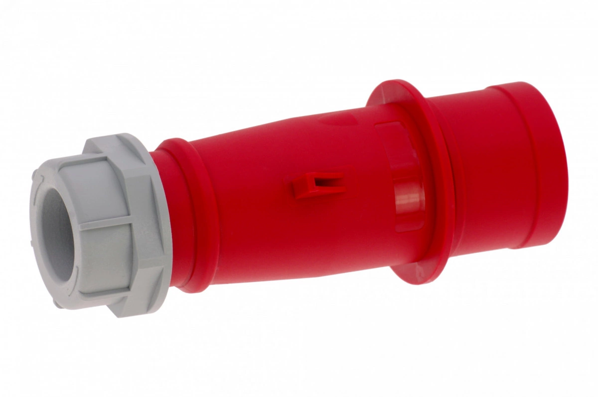 Вилка кабельная 32A/400V/3P+E/IP44 имеет винтовые контакты, выполнены из латуни. Сальник с разгрузкой натяжения кабеля. Корпус выполнен из полиамида