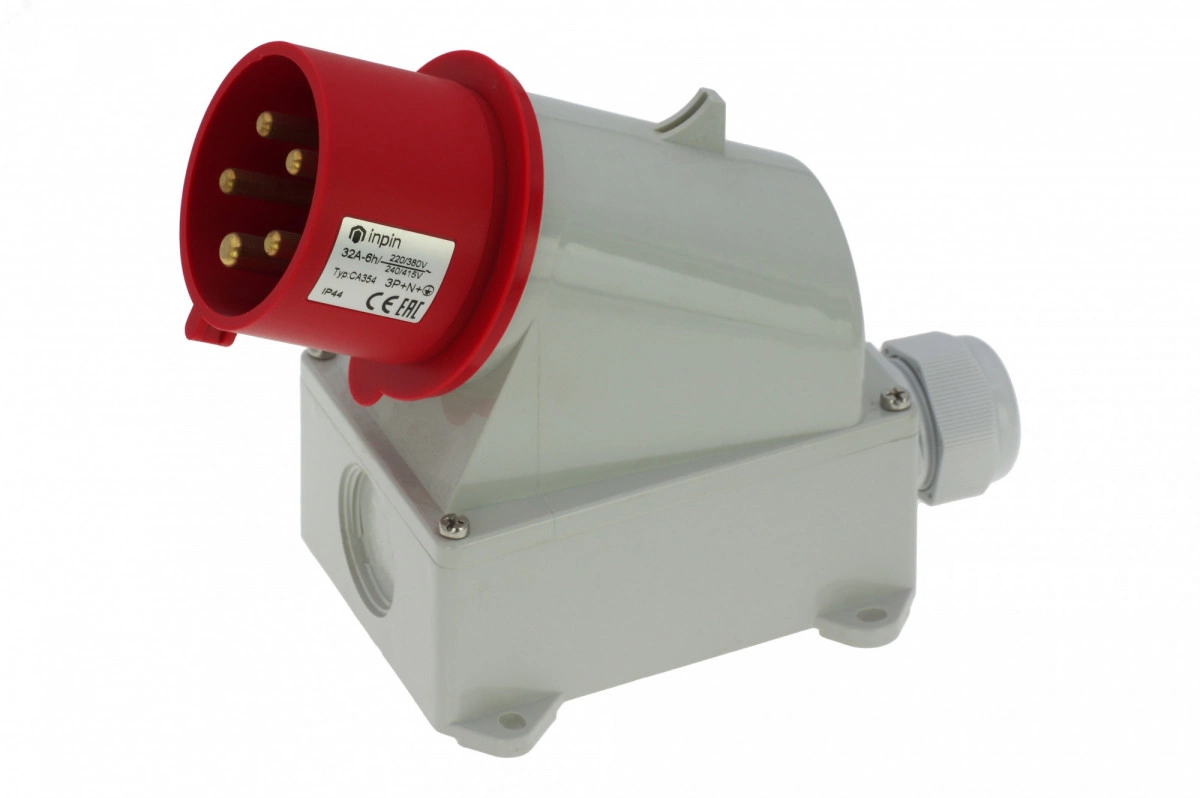 Вилка настенная 32A/400V/3P+N+E/IP44 имеет винтовые контакты, настенные. Корпус выполнен из полиамида, кабельный ввод в комплекте