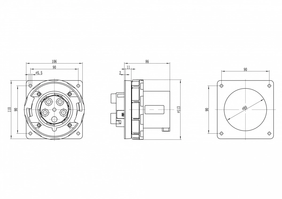 Розетка 145 3Р+РЕ+N 125А 380В IP67