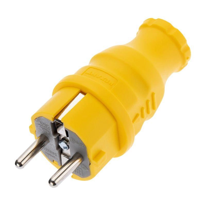 Вилка прямая влагозащищенная с заземл. 16А. IP44 каучук желт. Rexant 111-014