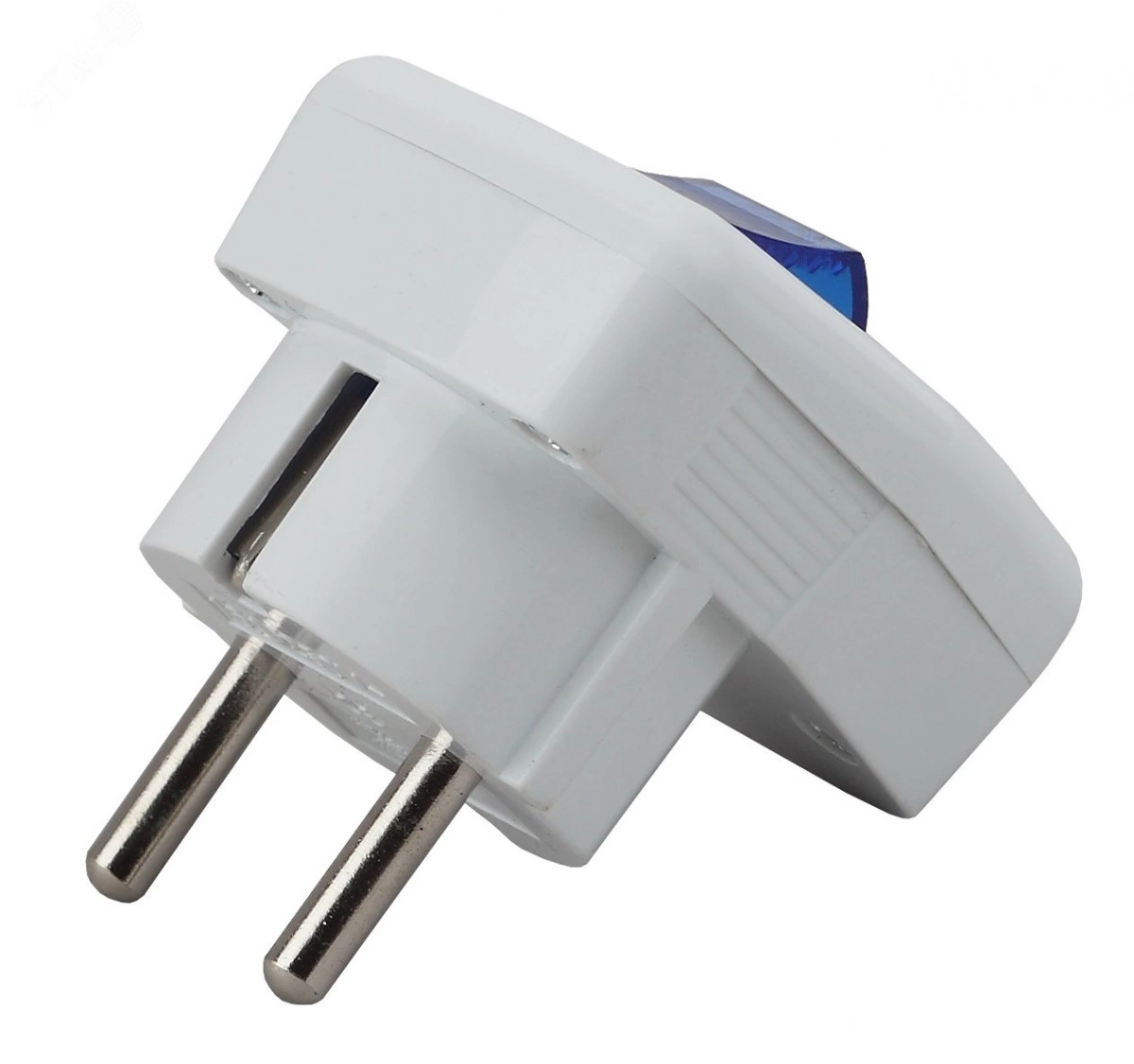 Вилка угловая с выключателем, с заземлением, 250В, 16A, IP20, белый, Stekker
